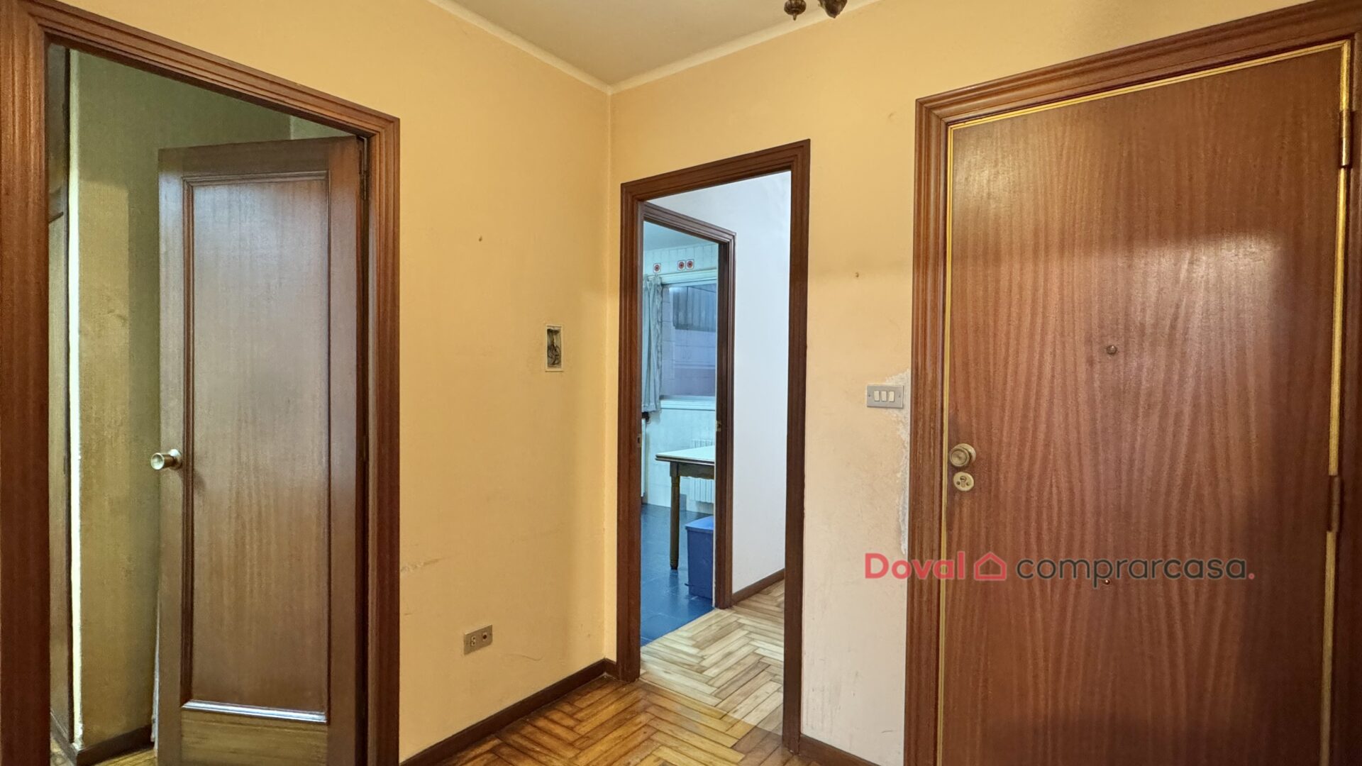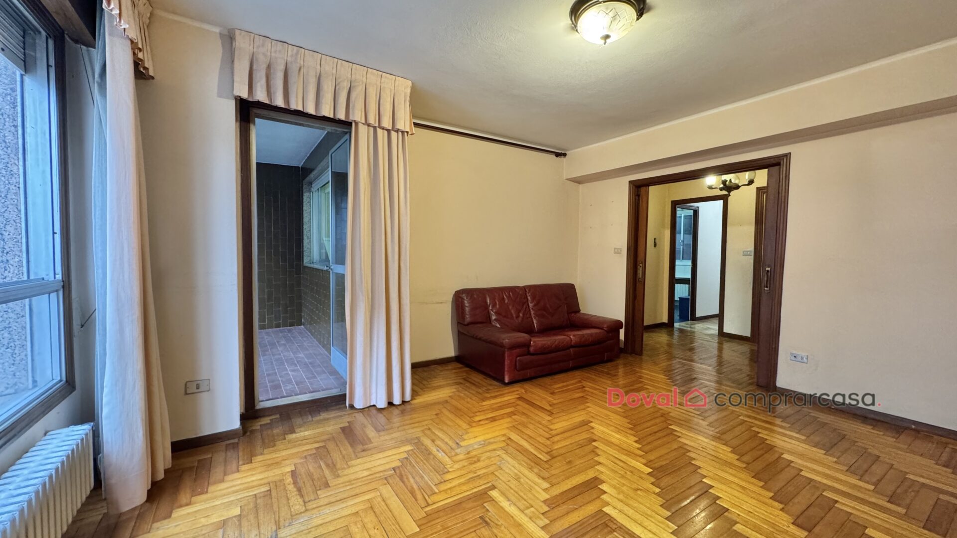 El piso dispone además de tres patios, lo que aporta ventilación cruzada y numerosas opciones de aprovechamiento tras la reforma. Los suelos de parquet en espiga aportan carácter y elegancia, mientras que en cocina y baños encontramos gres, práctico y funcional.